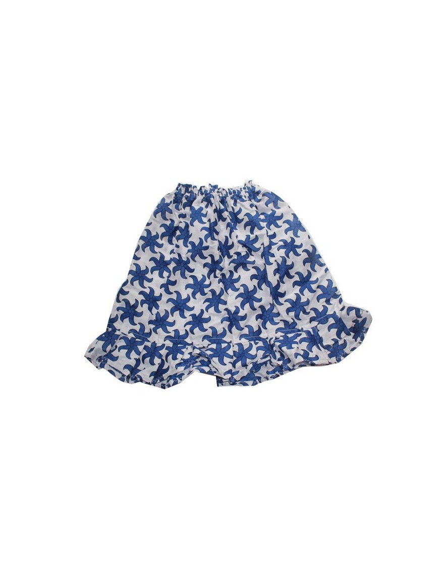 Jupe Ylang Bleu et Blanc pour enfant. Elle est fait à partir d'un tissu de nambawani. Elle est convient aux filles de 2 à 3 ans.